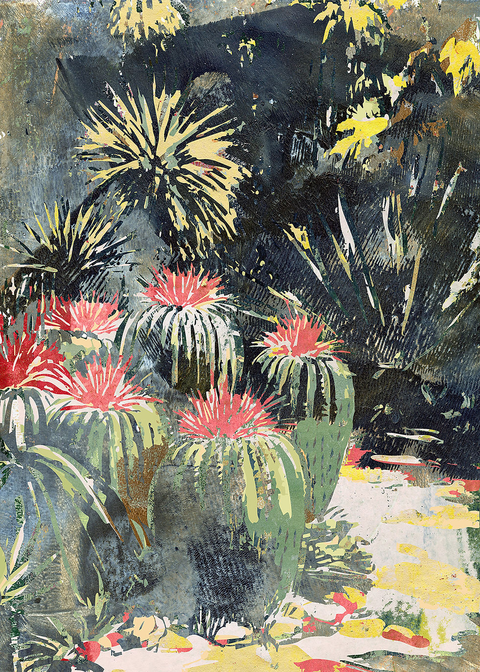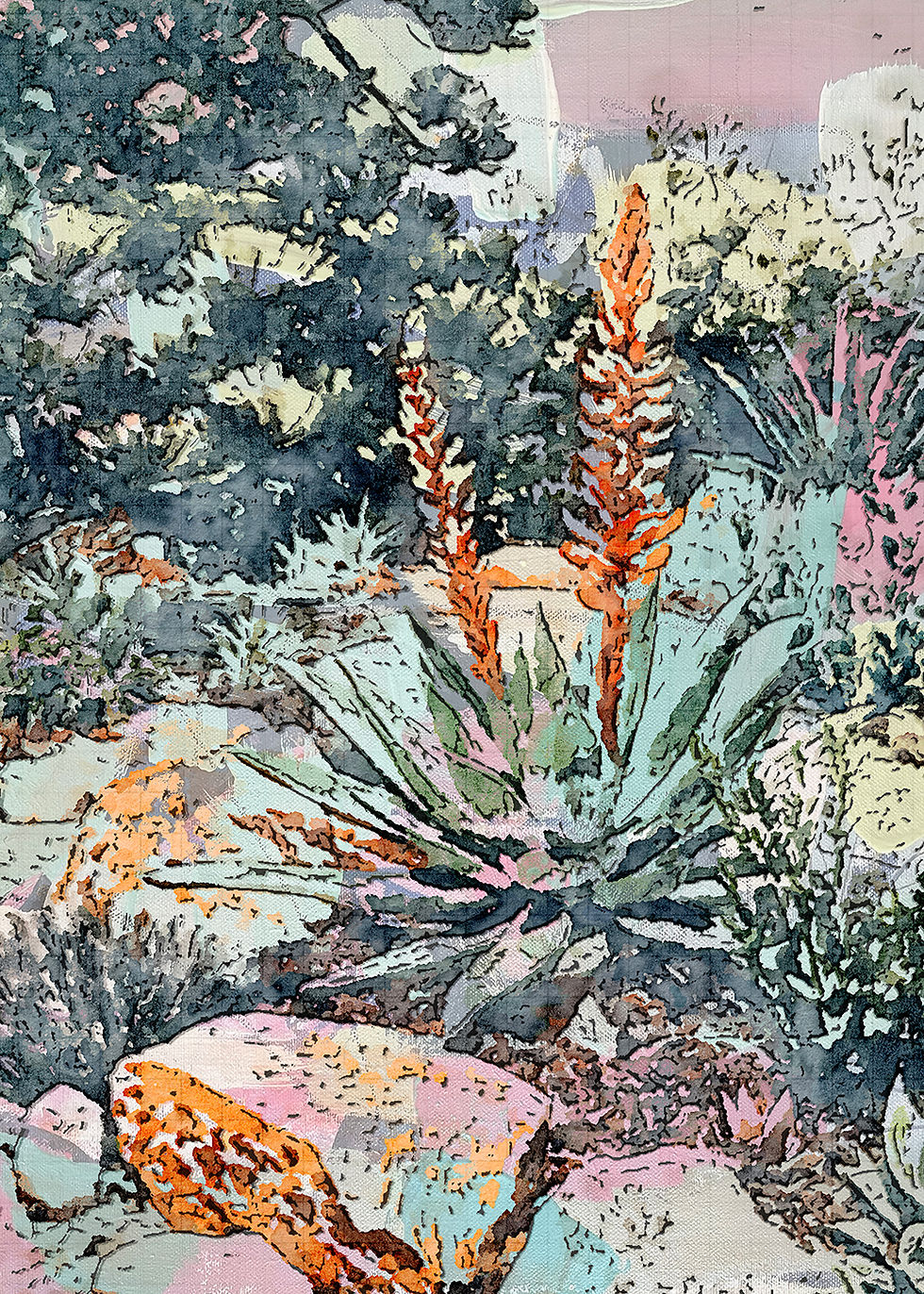 Creating is part of my everyday life. I find joy in watching ideas take shape - through cooking, painting, drawing, or simply observing nature. Road trips with my photographer sweetheart have brought fresh inspiration; our images become raw material for me to rework with paint, ink, and collage. My art is the result of turning shared discoveries into something new.